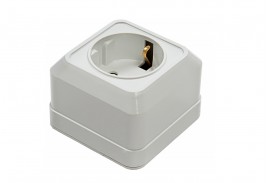 Розетка одинарная с заземлением со шторкой BOLLETO белая накладная 7028х IN HOME