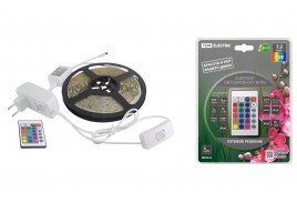 Комплект светодиодной ленты SMD5050-30 LED/м-12 В-7,2 Вт/м-IP20-RGB (5 м), 24 Вт, IR-контроллер TDM