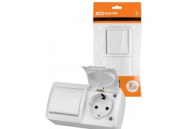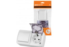 Блок выключатель 1-кл. 10А + розетка 2П+З 16А с защ. штор. с крышкой IP54 белый "Селигер" TDM